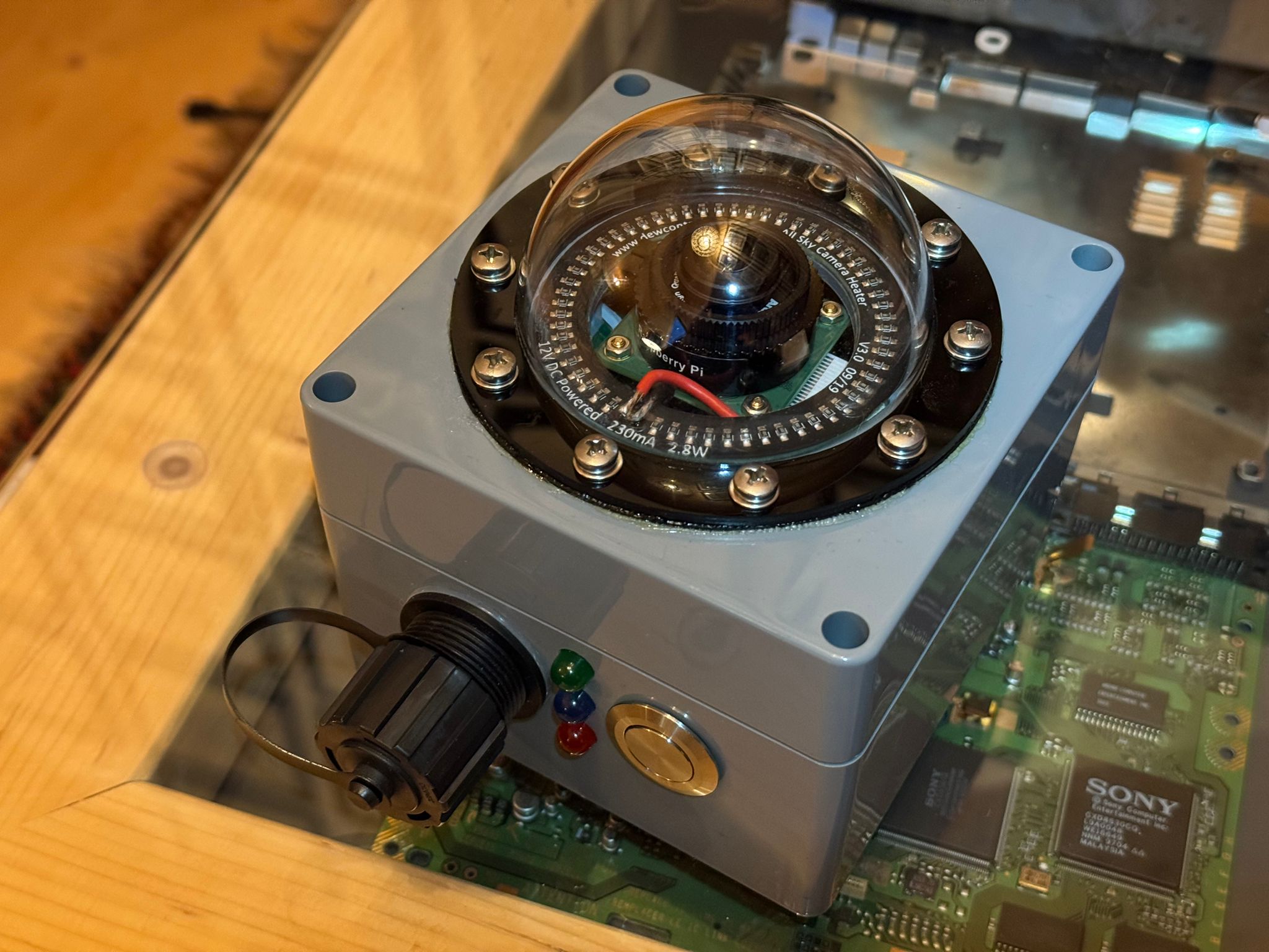 Wellicht voor de scherpe meelezer is het opgevallen dat er even een stagnatie zit in het bijwerken van deze pagina. Ik ben met volle energie in het maken van de Allsky camera gedoken. En heb hem tot aan het initieel afronden van (laat ik het noemen) versie 1.0. Zie onderstaand: